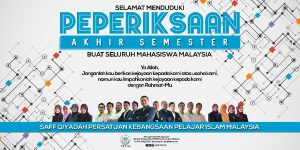 3. Saya mewakili saf qiyadah PKPIM mengucapkan selamat menduduki peperiksaan akhir semester buat mahasiswa-mahasiswa di seluruh Malaysia. Semoga diberikan kecerdasan akal, dijernihkan hati dan ketenangan menjawab soalan peperiksaan.